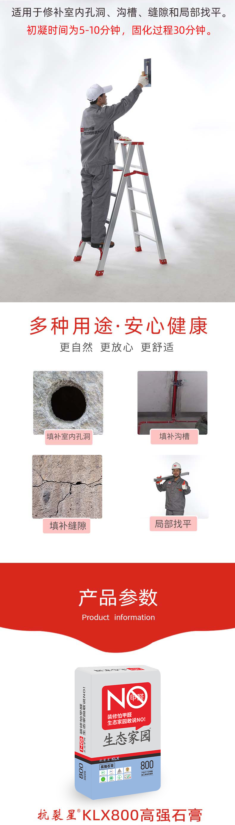 本品是一種以石膏為主要原料和多種添加劑混合而成的墻面修補(bǔ)材料。粘結(jié)強(qiáng)度高、收縮性小、和易性好、施工性能優(yōu)異。