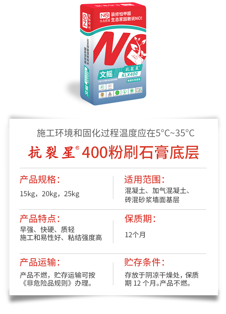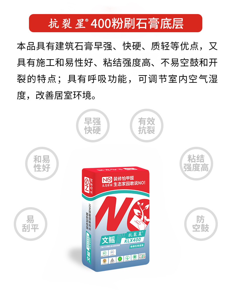 文鰩抗裂星KLX400粉刷石膏底層 規格:20kg   主要成分:石膏、水洗砂、碳酸鈣和添加劑。